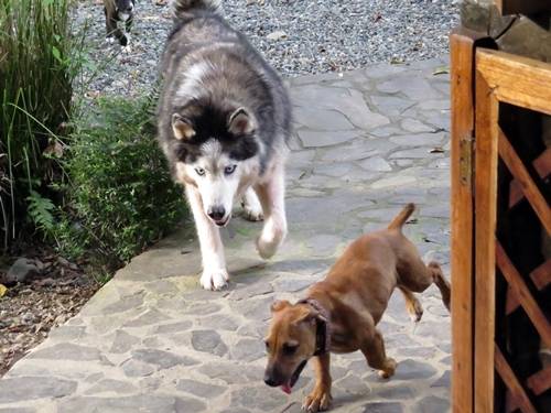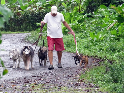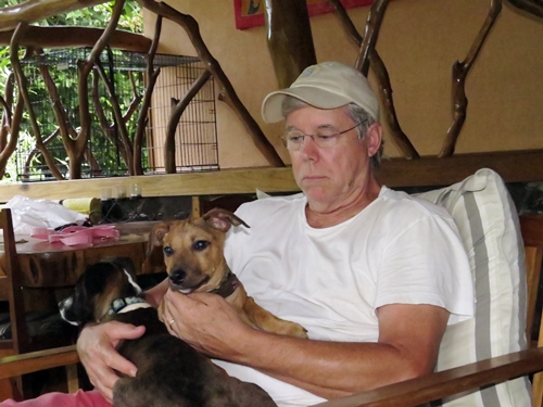 We also have adopted another rescue dog bringing the total to six which is definitely the limit of what we can take care of. Our new dog Steggie was one that I found a home for five years ago. He had a great home and great life up the road on a farm in San Clemente but last year his owner was deported. He wasn’t allowed to go back to his farm and so Steggie was running in the jungle and on the beach for eight months. We tried finding him a home but had no luck. By the time I got him he was literally dying.