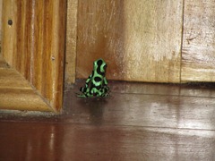 Today Kaya and Wiley got their first visit to the Veterinarian in Puerto Viejo. We took them to her house in Playa Cocles and she gave them an examination and said they are in great shape!!! We of course knew that but it was good to hear again. She then gave them medication to ward off ticks, fleas, intestinal parasites and heartworm – talk about one stop shopping!! Her price was incredibly fair – probably too much so. We are just so glad to know that she is here and that we have someone to go to in case of an emergency. She is from Spain and has been in PV for 15 years. She said she sometimes thinks of going back to Barcelona but then, when she does go back for a visit, cannot wait to come back to Puerto Viejo. I suspect that will be our experience as well.
