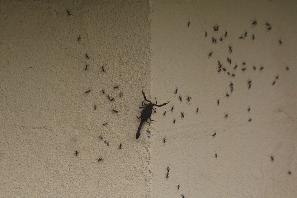 On Friday we had our first visit from army ants. We had been told that they come around every so often and that the best thing to do is pack up and go to the beach for a couple of hours while they troop through your house and flush out and kill bugs like cockroaches and spiders and scorpions.