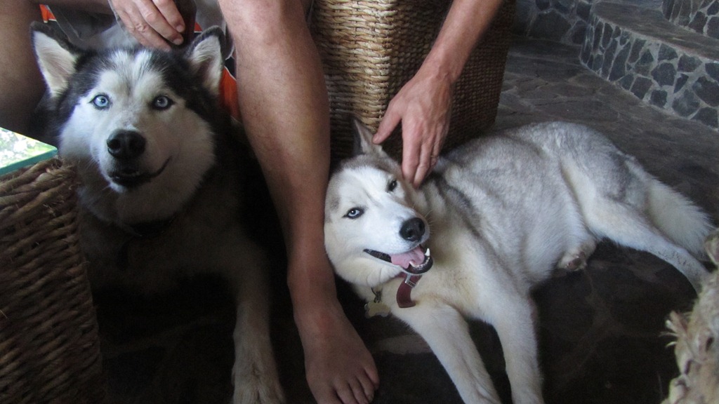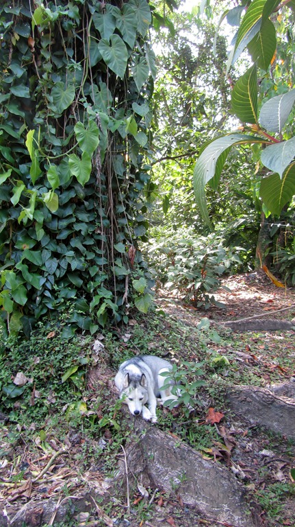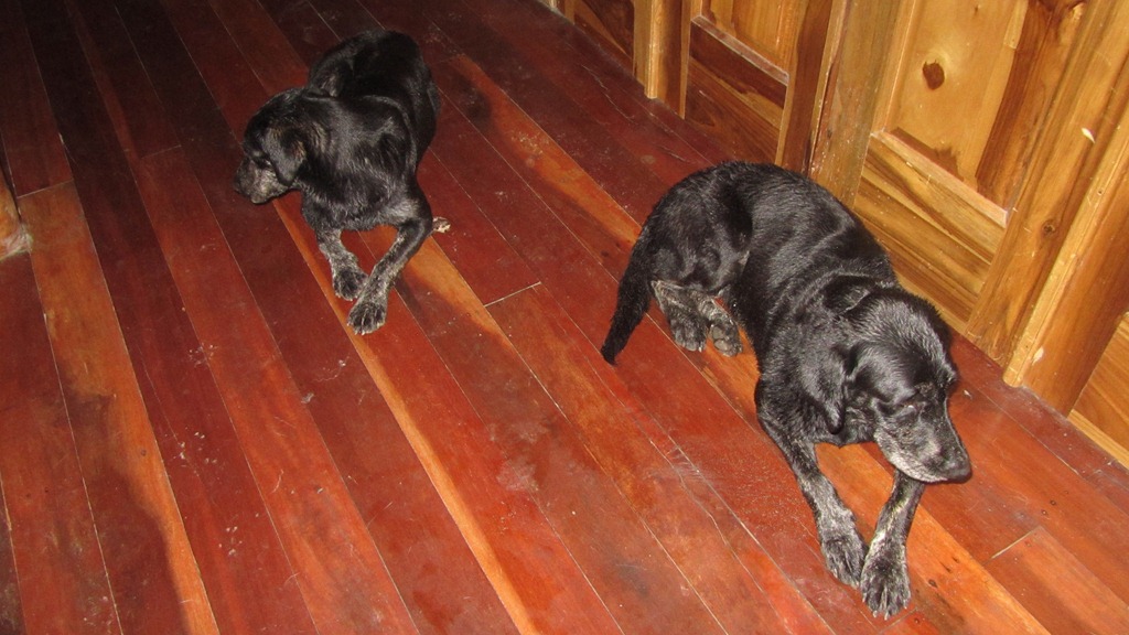 far they have held up well. They have had minor problems but nothing that wasn’t cleared up immediately with a quick visit to the vet (which, by the way, is amazingly affordable). Kaya has decided that laying in the leaves at the base of the giant trees is just the ticket to a relaxing day. Wiley likes hanging out in the family room when he is not getting his twice daily walk on the beach – he has decided inside is better with no flies buzzing around